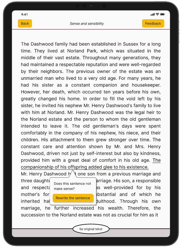 In collaboration with a local gymnasium, this project examined reading habits and perceptions of classic literature among students aged 17–22 through a workshop with ten students, consisting of a focus group interview, reverse brainstorming, and inspiration cards. Findings showed participants found classic books challenging due to complex language. This inspired Retroscribe, an AI-driven tablet application that rewrites classic literature into contemporary language while retaining the original plot. A hallway test evaluation showed unanimous preference for the rewritten text, suggesting it enhances excitement and relatability for the target audience.